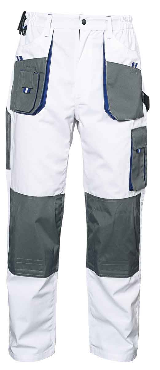 Работни панталони EMERTON White в бял цвят. Удобни и здрави панталони с четири обемни джоба – два отпред и два отзад. Задните джобове се затварят с капаци с велкро. Отстрани на крачолите панталоните имат инструментални джобове. Подходяши за стройтелни работници, хранително вкусова индустрия и др.