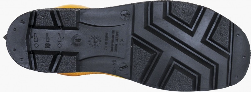 Ботуши изработени от нитрил – гума с метално бомбе и грайферно ходило с метална пластина, 38 см. Защита срещу вода, прах, натиск и перфорация. Антистатична подметка, устойчива на растителни и животински мазнини.Подходящи за всички нужди за безопасна работа в стройтелството, селското стопанство и производството.