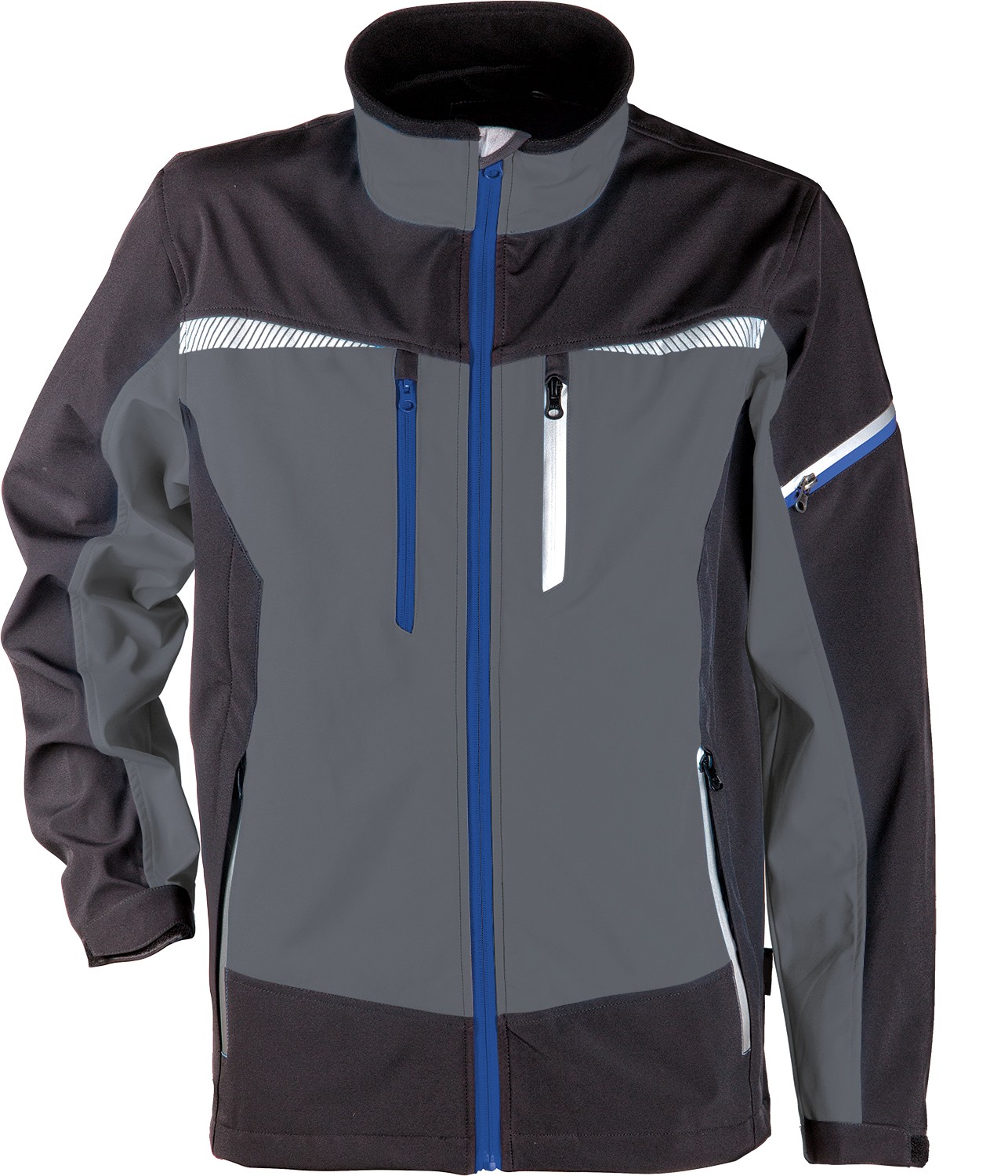 Мъжкото яке модел PRISMA SOFTSHELL е изработено от лек двуслоен SoftShell. Работното яке е ветро и влагоустойчиво със светлоотразителни елементи. Може да се използва както за работа така и за разходка в парка, планината или за спорт. Модерната визия на якето го прави предпочитано за ежедневно носене. Якето се закопчава с цип – централно отпред и има два странични джоба, два в областта на гърдите и един джоб на ръкава, които също се закопчават с ципове в контрастни цветове. В долната част ръкавите разполагат с велкро за пристягане.