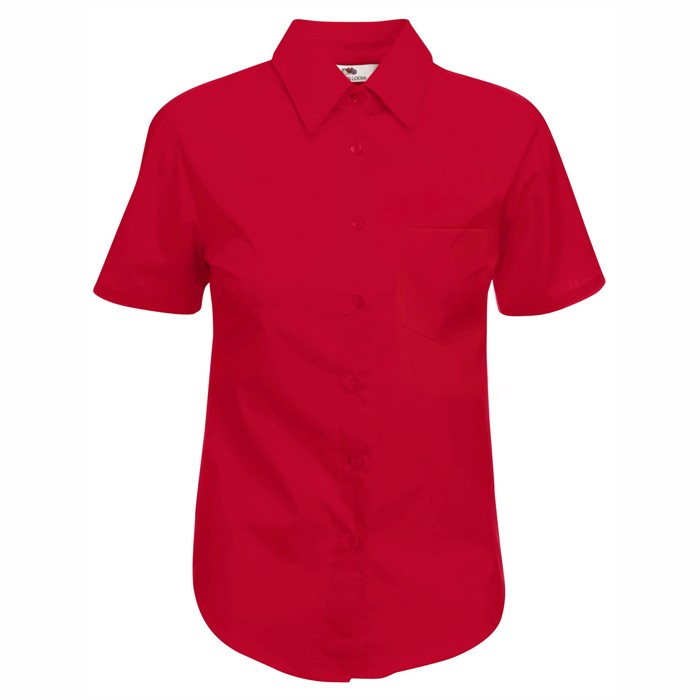 Елегантна дамска риза с къс ръкав и джоб, съставена от 55% памук и 45% полиестер (120гр./м2). Яката и копчетата са класически. Подходяща е за носене както в свободното време, така и за работа.