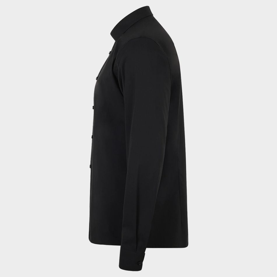 Английското закопчаване допринася за изчистената линия на модела, като осигурява елегантна и професионална визия. Италианската яка добавя нотка изтънченост и гъвкавост, позволявайки лесно съчетаване с вратовръзка, сако или носене без аксесоари. Този детайл прави ризата подходяща за различни стилове и ситуации.