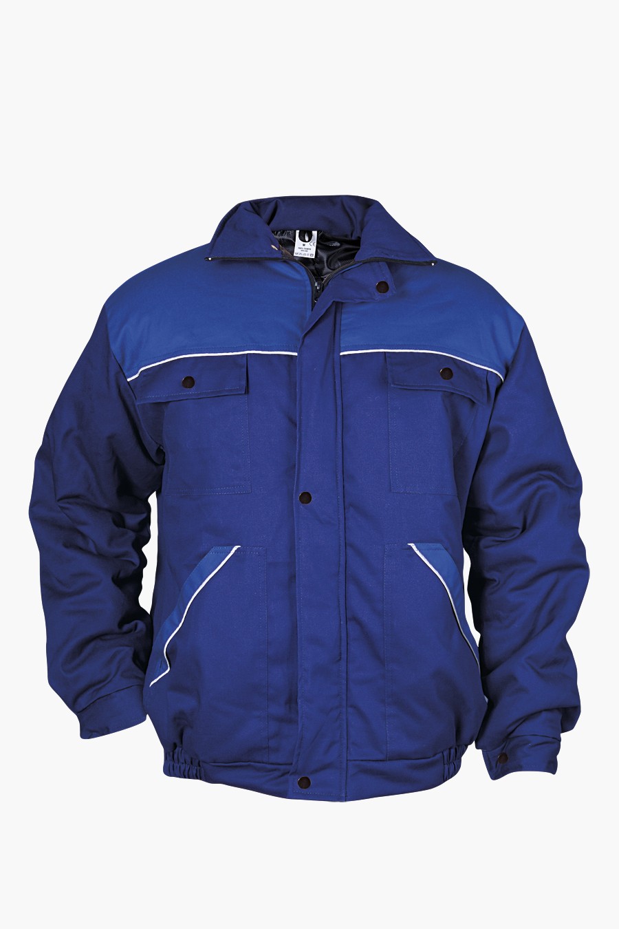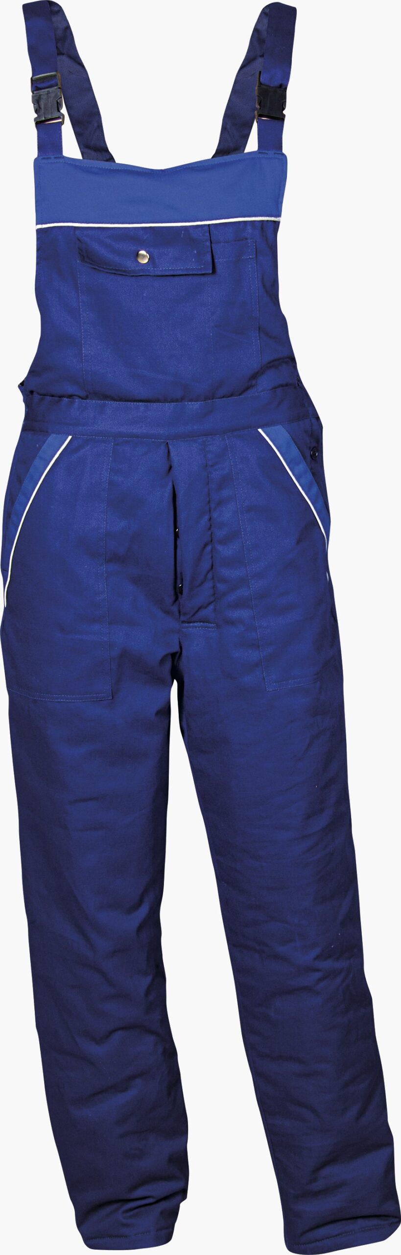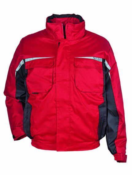 Зимен работен комплект DIMMY WINTER – Работния костюм е изработен от плат със състав 100% памук. Състои се от яке и полугащеризон. Полугащеризона е с цяла платка на гърдите и класическа права кройка. На джобовете и на гърдите на якето и полугащеризона са поставени светлоотразителни фитили. Якето е с класическа кройка с два долни и два горни джоба, на ръкавите са поставени ластици. Подпатата е прошита на ромбове за да се задържа ватата при пране. Здрава и удобна работна дреха за студеното време.
