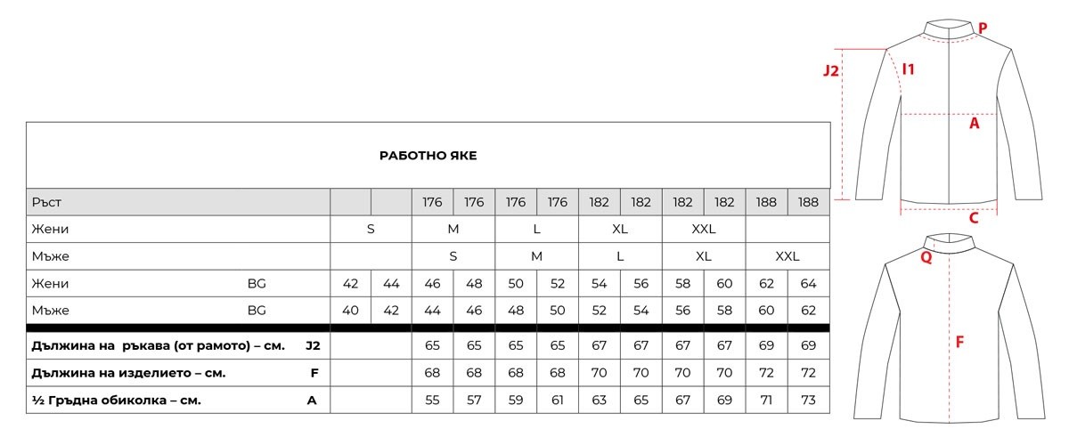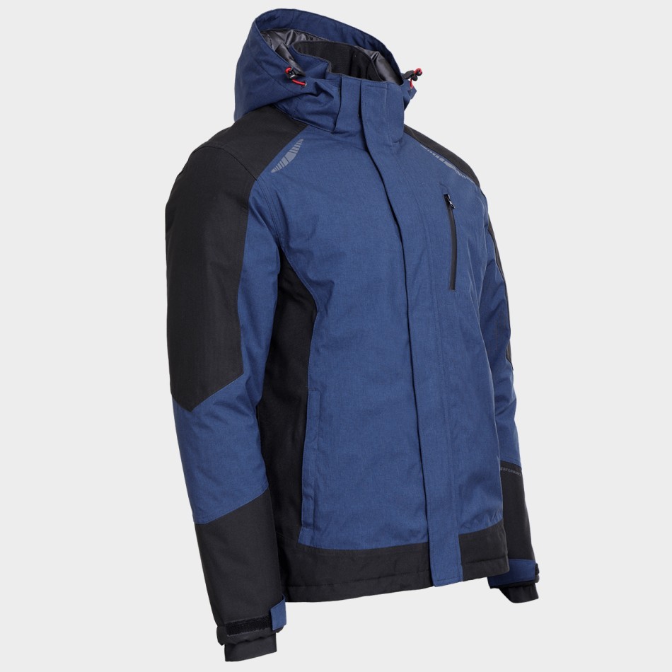 Якето е изработено от 100% полиестер. То е ватирано и е подходящо както за работа, така и за ежедневието. Има закопчаване с цип и велкро, два вътрешни и два странични джоба с цип, сваляща се регулируема качулка, регулируема талия, ветроустойчиви маншети с велкро и светлоотразителни елементи.