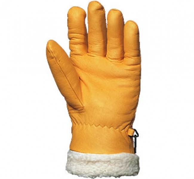 Работни ръкавици, изработени изцяло от лицева телешка кожа и студозащитна подплата, дължина 32см Ръкавиците са много издръжливи, могат да се използват от всички работници и персонал в ски зоните, при дърводобив, в охладени помещения. Меки, здрави и удобни зимни, кожени ръкавици.