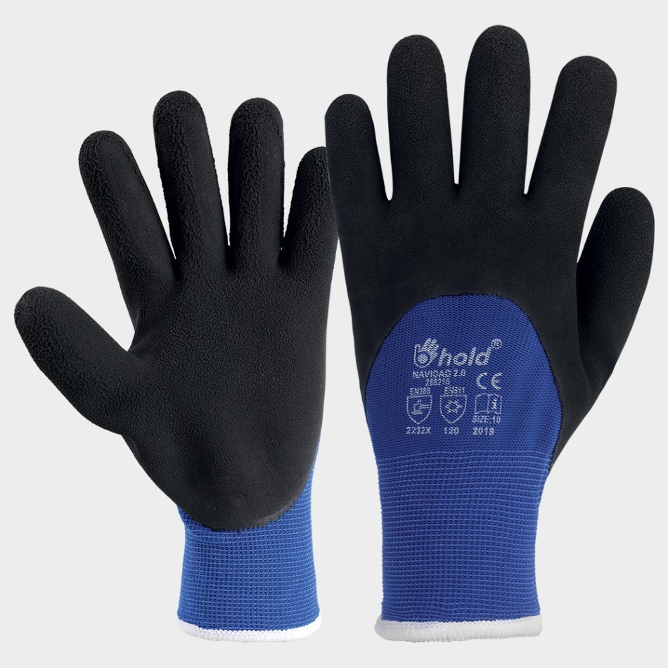 Работни ръкавици NAVIDAD с топла подплата. Ръкавиците са изработени от безшевно полиестерно трико 13G с ластичен маншет, като дланта и пръстите са залети с разпенен латекс. На гърба на ръкавицата латекса е залят над пръстите което не позволява ръкавицата да се мокри в тази част. Този модел работни ръкавици имат отлично сцепление с мокри и влажни повърхности. Топли и здрави ръкавици, изберете ги още днес.