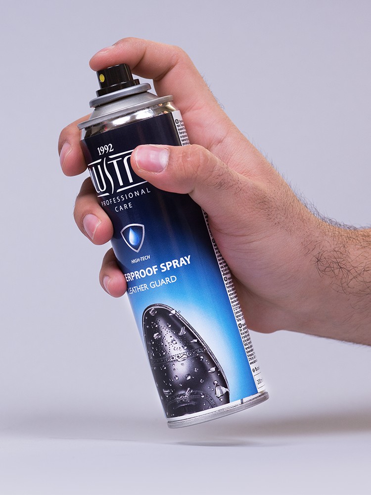 2. Третиране: Напръскайте равномерно от 20 см разстояние. Не забравяйте да третирате и шевовете, тъй като влагата навлиза най-лесно през тях. Изчакайте мин. 10-15 мин. преди да излагате обувките на дъжд или сняг. За най-добри резултати – оставете обувките на сухо място за 24 часа и повторете процедурата.