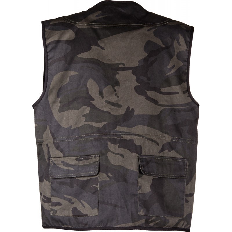Мъжки камуфлажен елек изработен от 65% полиестер и 35% памук, 195гр/м2. Изключително лек и функционален с множество джобове отпред с различно закопчаване – цип и велкро за съхранение на вещи и два джоба отзад с капаци. Добър вариант към екипировката за лов и риболов.