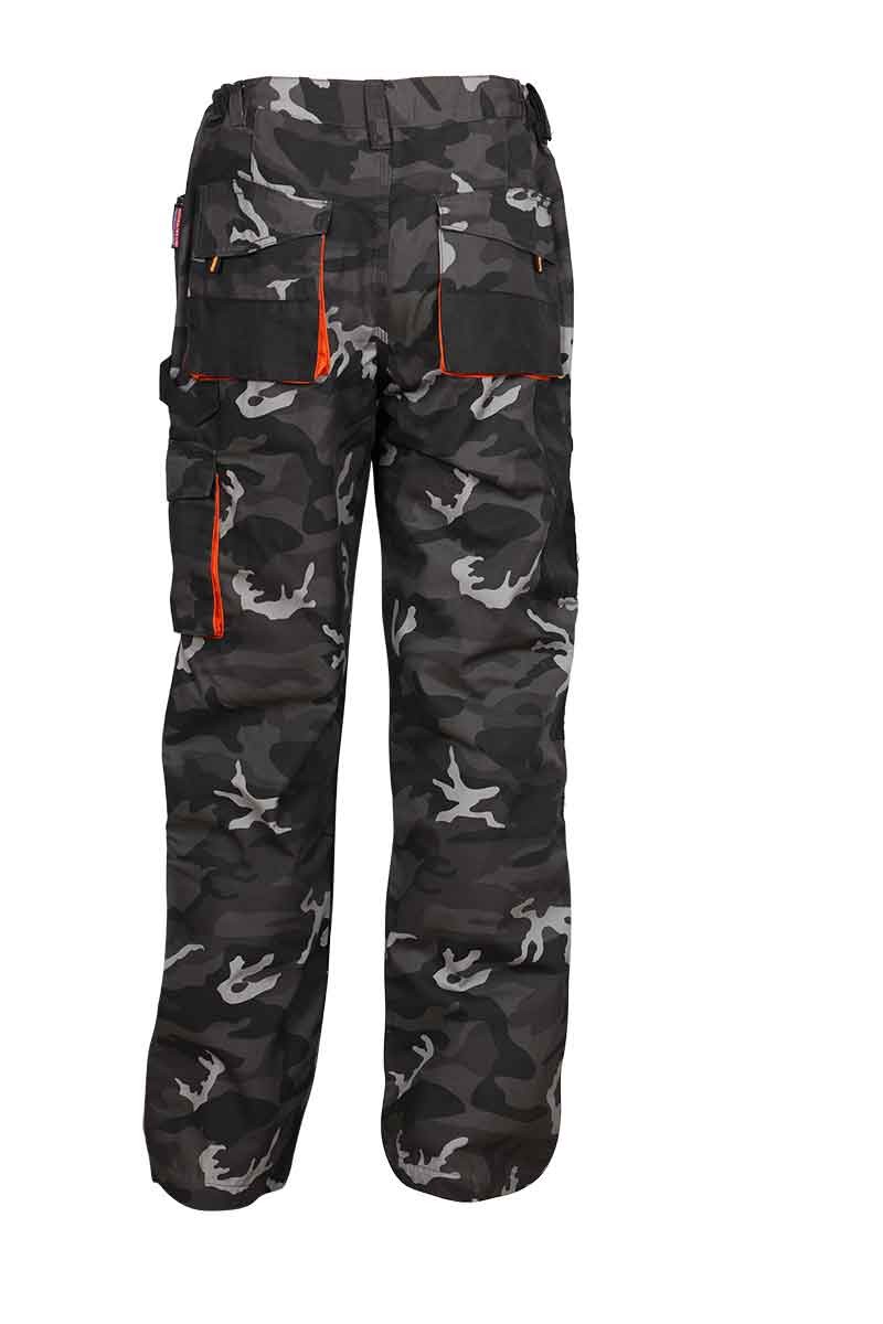 Работен панталон в камуфлажен цвят с два предни и два задни обемни джоба. На двата крачола отстрани има инструментални джобове. Панралоба е здрав, надежден и много удобен, с него може да работите както навън така и в затворени помещения.