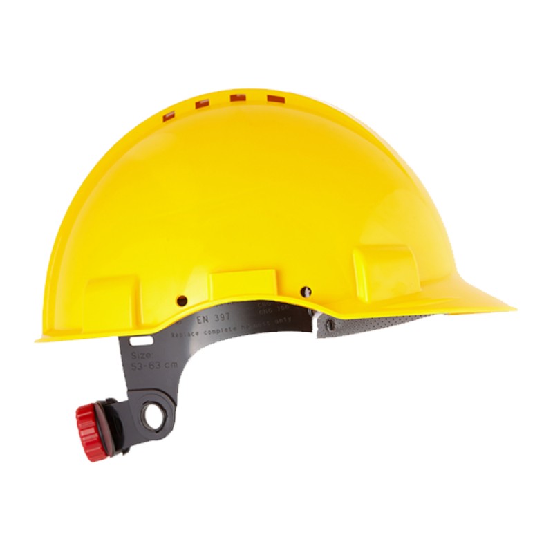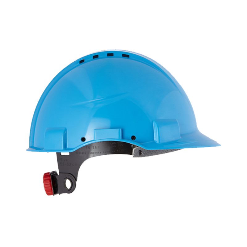 Вентилирана каска с винт. Изключително удобна вътрешна текстилна лента OekoTex® Удобна за работа във всички сфери на строителството и индустрията.
