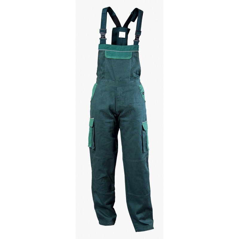 Полугащеризонът е със светлоотразителен кант, изработен от 100 % памук, 240 g/m2. Полугащеризона защитава от производствени замърсявания и механични въздействия, странично закопчаване с копчета. Джобове – един горен с капак, два долни странични, един заден с капак и два инструментални с капак.