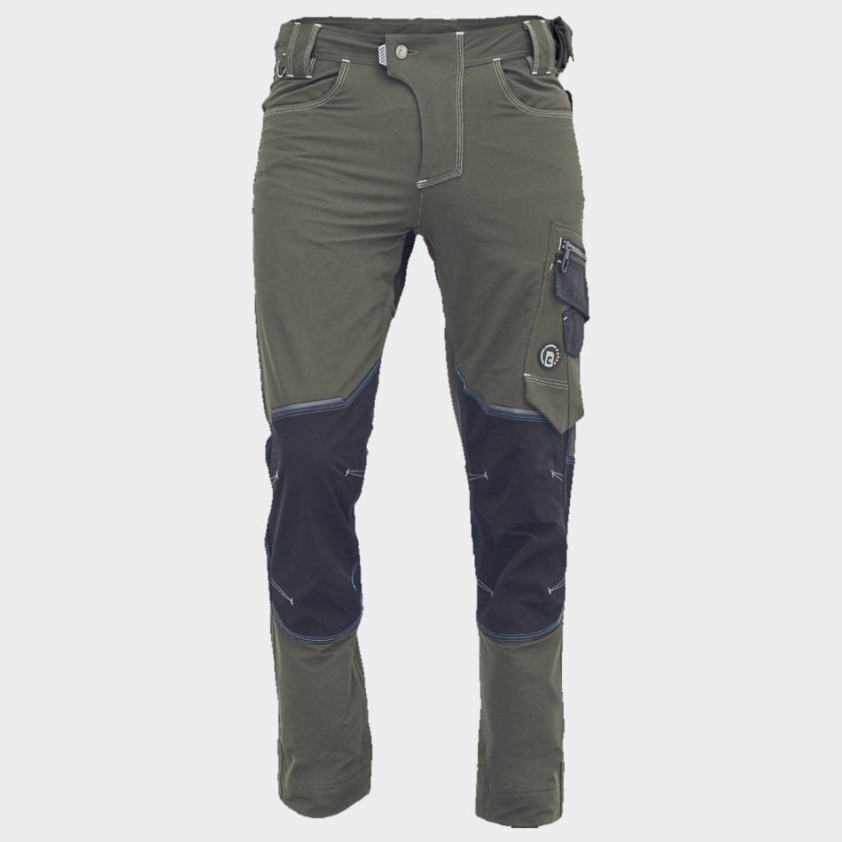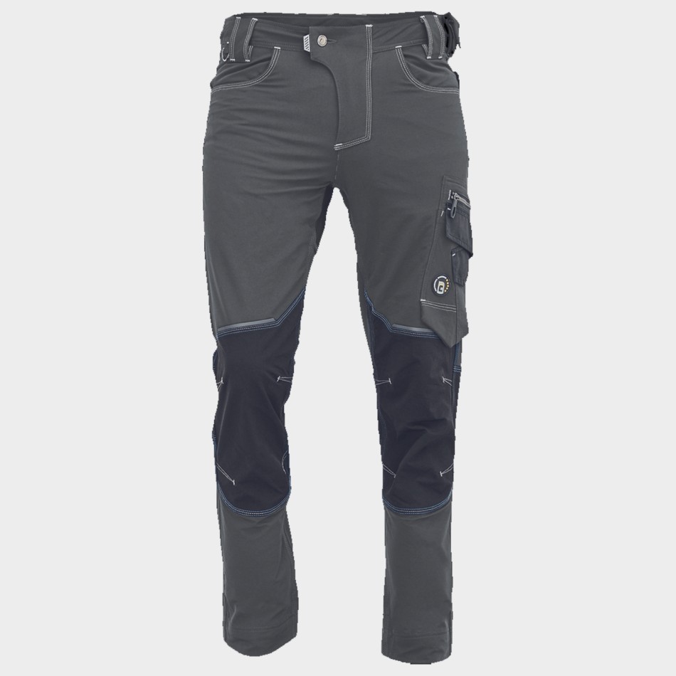 Този мъжки работен панталон е идеален за професионалисти, които търсят комфорт, издръжливост и функционалност. Панталонът е изработен от еластичен иновативен материал TRIFIBETEX PRO®, който осигурява висока свобода на движение, дишаемост и устойчивост на износване. Материята е съставена от 90 % полиамид и 10 % спандекс, с плътност 240 гр./м?. Полиамидът е синтетична тъкан, която е здрава, лека и бързосъхнеща, а спандексът добавя еластичност и прилепване към тялото.
