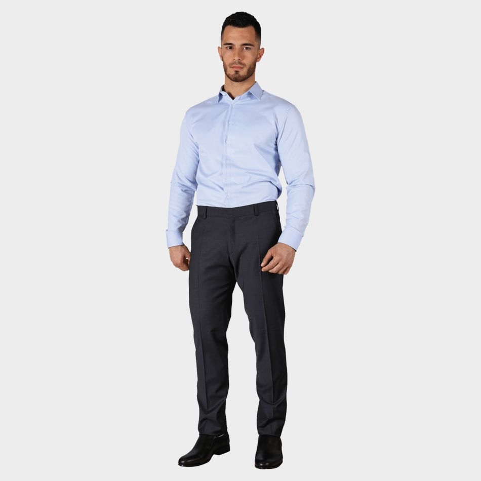 Ризата е с вталена кройка, която подчертава мъжката фигура, без да ограничава движението. Дългият ръкав и малката яка в италиански стил придават изтънченост и съвременен характер, като същевременно позволяват лесно комбиниране с различни аксесоари – от класически вратовръзки до модерни шалове. Скритото закопчаване допринася за изчистения и минималистичен вид, като елиминира визуалния шум и акцентира върху линията на ризата. Маншетите с две копчета осигуряват допълнителна функционалност и възможност за регулиране според предпочитанията.