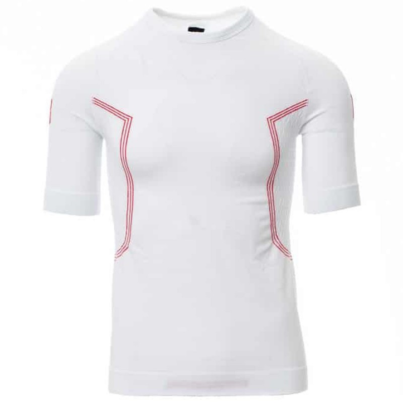 Мъжка термo тениска, обло деколте, къс реглан ръкав. Мека и еластична материя, със специална плетка на гърдите и гърба, релефни мотиви на пропелер от двете страни, за да се осигури правилно дишане и постоянна терморегулация. Яка, долна част и ръкави с рипсен ръб от същия материал, за по-добър комфорт. Ергономична безшевна структура с грапавост в лактите, която осигурява перфектно приспособяване към формите на тялото. МАТЕРИЯ: 66% полиамид, 26% полиестер, 8% еластан ТЕГЛО: 280 гр./м²