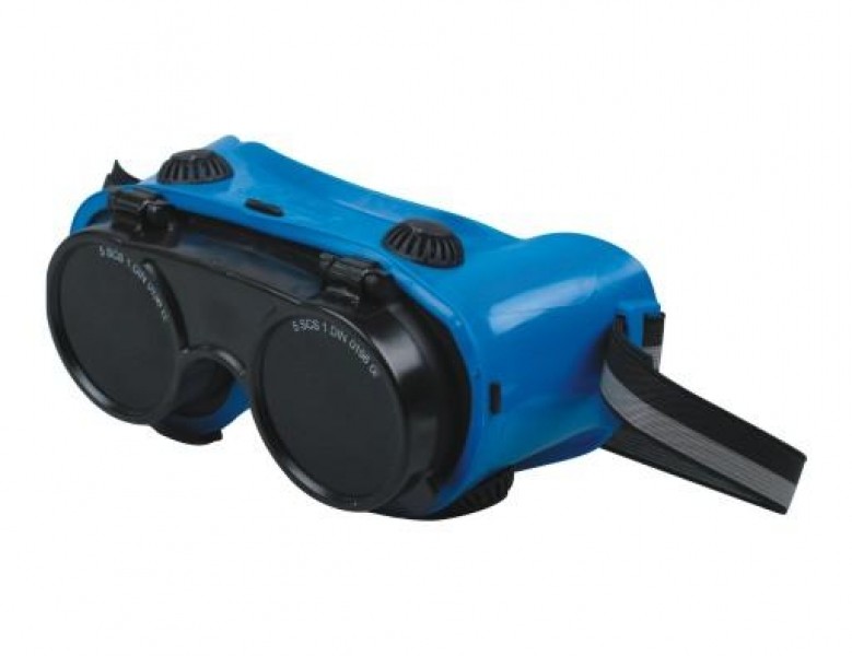 | Очила за оксиженисти с повдигащ се екран, пасивна вентилация с два аератора, тип маска с мека част, която прилепва удобно към лицето, PVC рамка, стъкла ф50. Закрепване на главата с регулируема ластична лента.