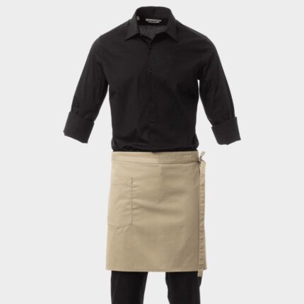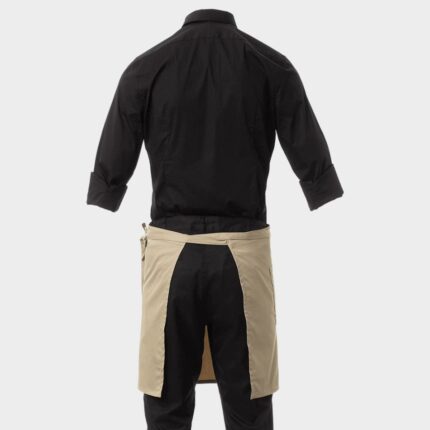 Моделът разполага с два предни джоба, джоб за монети и два задни джоба с двойни филетки, които се затварят с копчета. Тази конфигурация осигурява практичност и лесен достъп до най-необходимите принадлежности, като същевременно запазва изчистен и професионален външен вид. Всеки детайл е внимателно обмислен, за да отговори на нуждите на готвачите, работещи в ресторанти, хотели, кетъринг услуги и други гастрономически обекти.