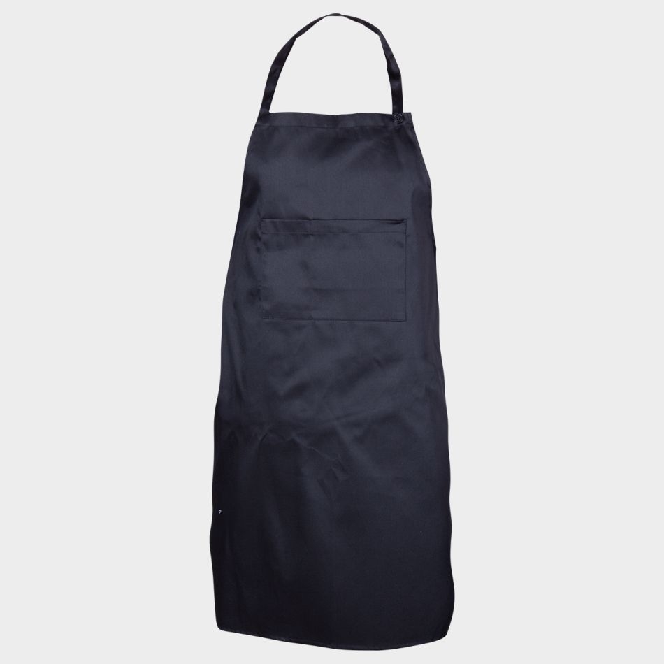 COOK е готварска престилка с нагръдник, регулируема връзка с копче и преден джоб, изработена от здрава смесена материя за комфорт и защита в кухнята.