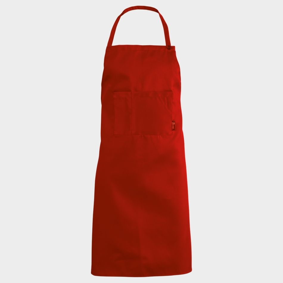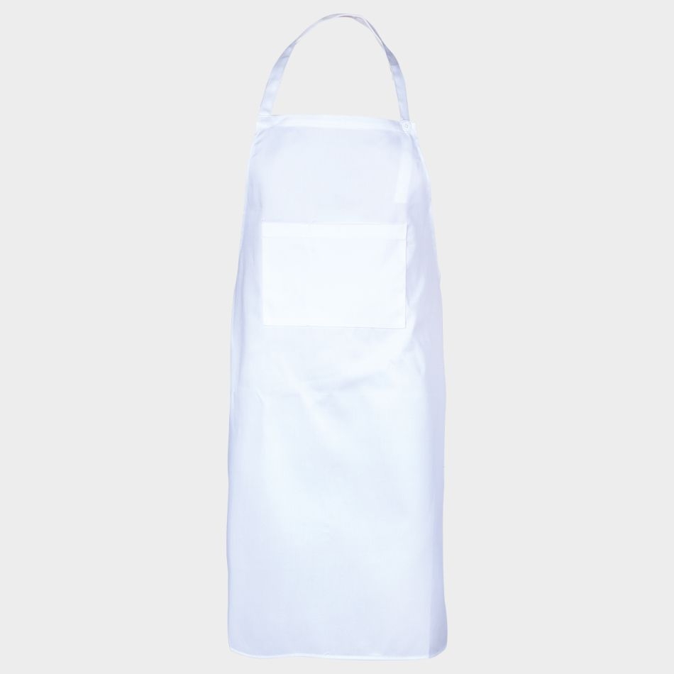 Моделът е снабден с нагръдник и връзка с копче за регулиране, което позволява лесно адаптиране към различни телосложения и осигурява удобно прилягане. Това решение допринася за стабилност и комфорт при продължително носене, като същевременно улеснява обличането и събличането. Престилката е проектирана така, че да осигурява добра покривност и защита на дрехите от замърсявания, мазнини и течности.