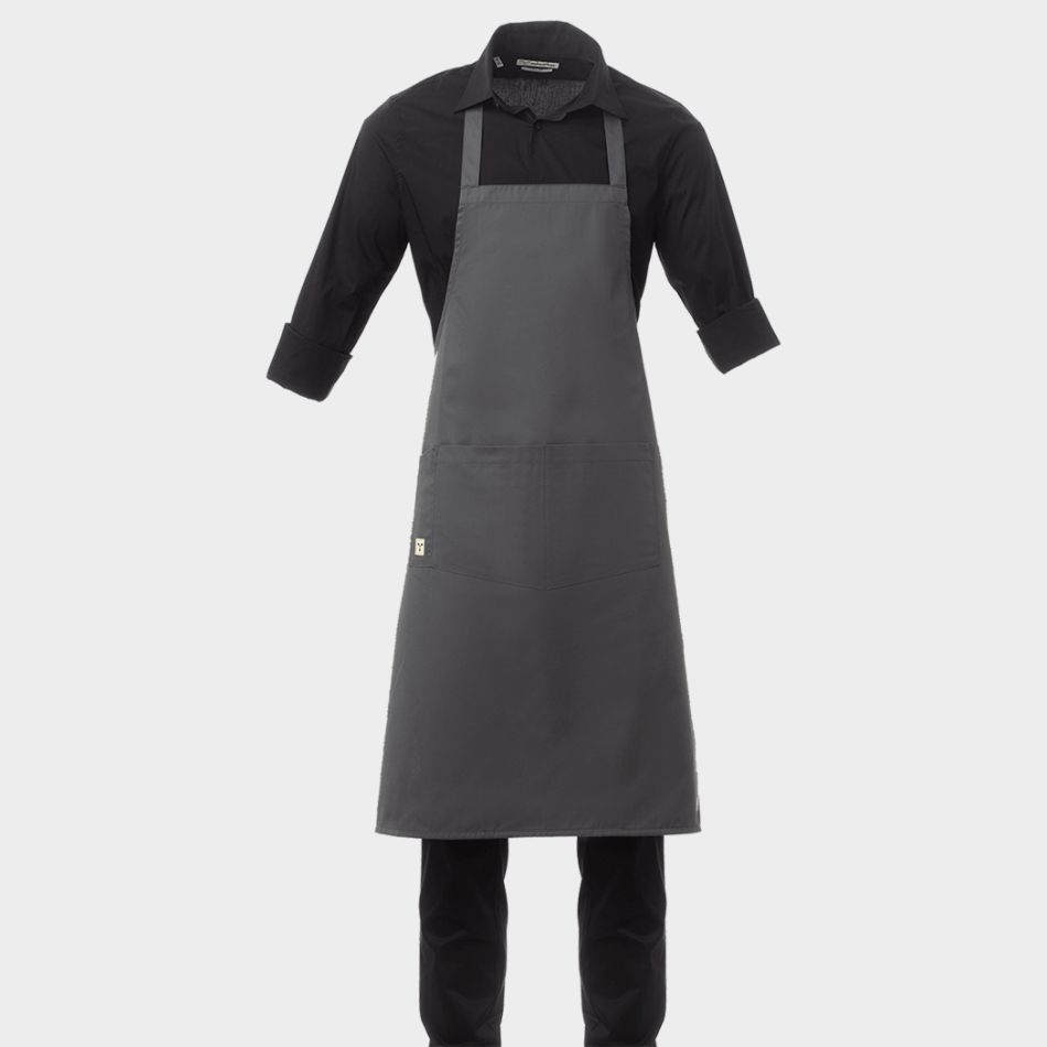PAYPER BOUTIQUE е универсална готварска престилка с нагръдник, централен джоб с две отделения и допълнително джобче, изработена от здрава смесена материя.