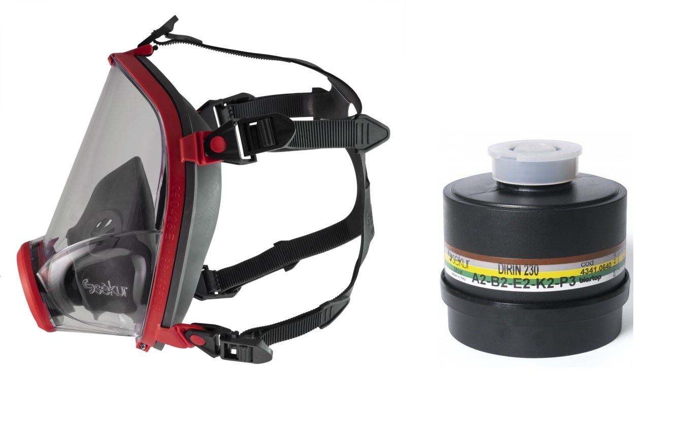 Комбиниран филтър за химическа защита DIRIN 230 – А2В2Е2К2-P3 RD, BIOSTOP. Този филтър защитава от органични съединения и техните пари, неорганични и киселинни газове и пари, серен диоксид, амоняк и производни на амоняка съединения, радиоактивен и токсичен прах, бактерии и вируси. При съхранение и работа системата BIOSTOP не позволява развитието на бактерии и плесени върху и във филтъра. Филтрите могат да се изгарят след когато станат негодни. DIRIN 230 са с резба съгласно БДС EN 148-1:2002.