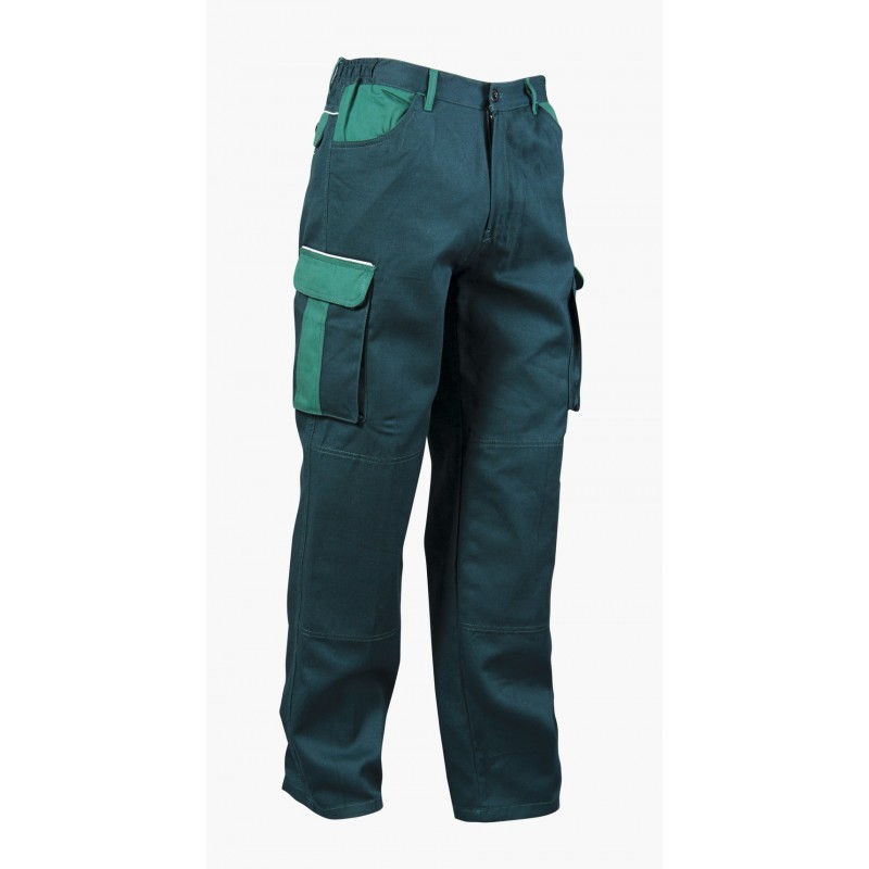 Панталон със светлоотразителен кант изработен от 100 % памук, 240 g/m2. Панталона защитава от производствени замърсявания и механични въздействия, свободна кройка, колан с гайки, допълнително странично пристягане с ластик, закопчаване с цип и копче. Мултифункционални джобове – два странични, два задни с капак и два инструментални с капак.