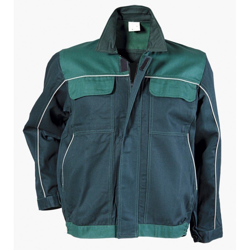 Яке със светлоотразителен кант, изработено от 100 % памук, 240 g/m2. Защитава от производствени замърсявания и механични въздействия. Якето е с два горни джоба с капаци и два долни странични, закопчаване с цип, покрит с пластрон.