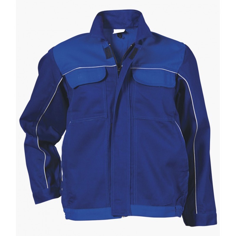 Якето със светлоотразителен кант, изработено от 100 % памук, 240 g/m2. Защитава от производствени замърсявания и механични въздействия. Якето е с два горни джоба с капаци и два долни странични, закопчаване с цип, покрит с пластрон.