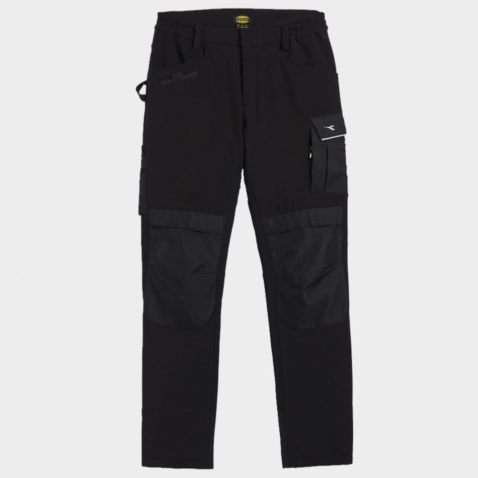 DIADORA CARBON SOFTSHELL PERFORMANCE Работен панталон е иновативен и високофункционален панталон, проектиран да осигури комфорт, защита и издръжливост при интензивни условия на работа. Изработен от водоотблъскваща и еластична софтшел материя (94% полиестер и 6% еластан, 270 г/м²), този панталон предлага оптимална подвижност и защита от влага, без да ограничава движението.