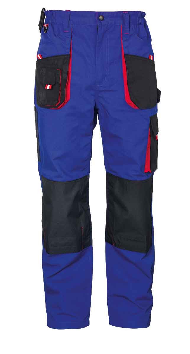 Работните панталони Emerton BLUE са с класическа кройка и удобен дизайн. На предната страна са пришити два джоба, отзад също са пришити два джоба който се затварят с капаци с велкро. От двете страни на крачолите отстрани работния панталон има инструментални джобове. Панталона е с подсилени парчета плат на коленете, като на същото място има възможност за поставяне на наколенки. Здрав и удобен панталон.