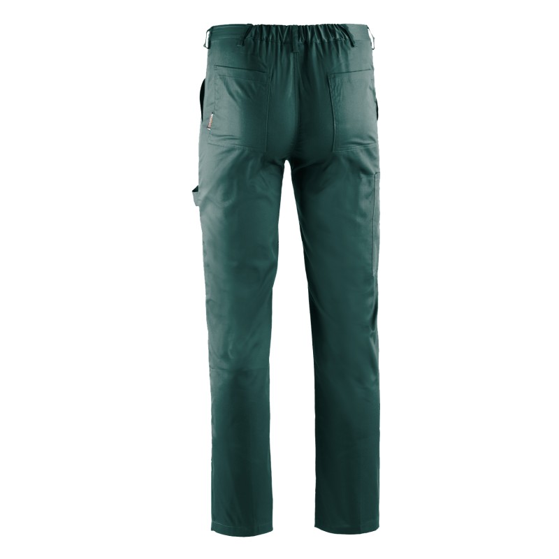 Работен панталон изработен от памук/полиестер. Предпазва от вятър, прах, пръски вода и нетоксични замърсявания. Свободна кройка, прав крачол, има два долни странични джоба и два задни. Има един джоб на десния крачол. Гайка за инструменти.