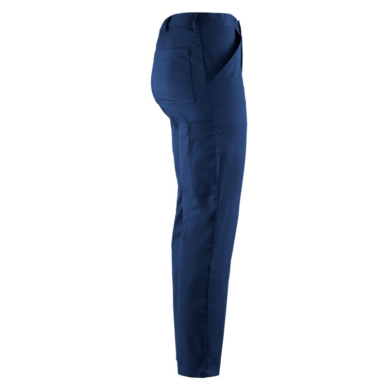 Работен панталон изработен от памук/полиестер. Предпазва от вятър, прах, пръски вода и нетоксични замърсявания. Свободна кройка, прав крачол, има два долни странични джоба и два задни. Има един джоб на десния крачол. Гайка за инструменти.