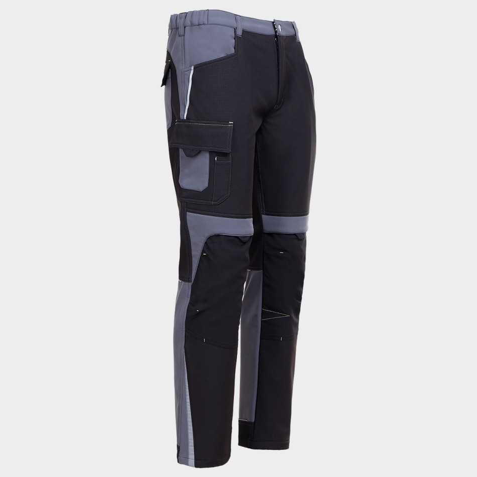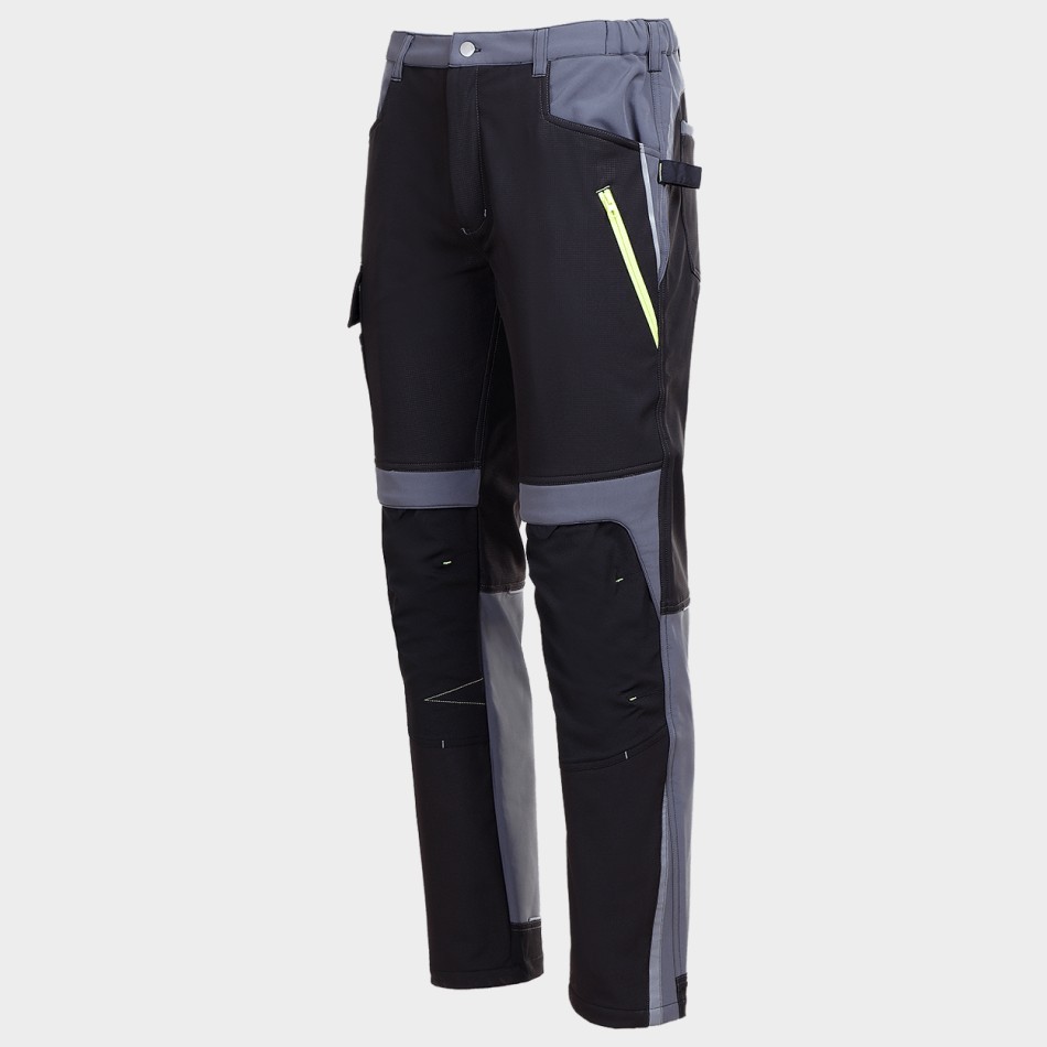 Работните панталони са изработени от 96% полиестер, 4% спандекс и са от еластична софтшел материя с TPU мембрана и полар. Те са снабдени с функционални джобове, подсилени колена с джоб за наколенки, светлоотразителни елементи и многофункционален джоб с велкро затваряне за инструменти, халка за чук. Панталоните се закопчават с цип и копче и имат два странични, два задни джоба – единият с капак, страничен джоб с цип. В талията има частичен ластик