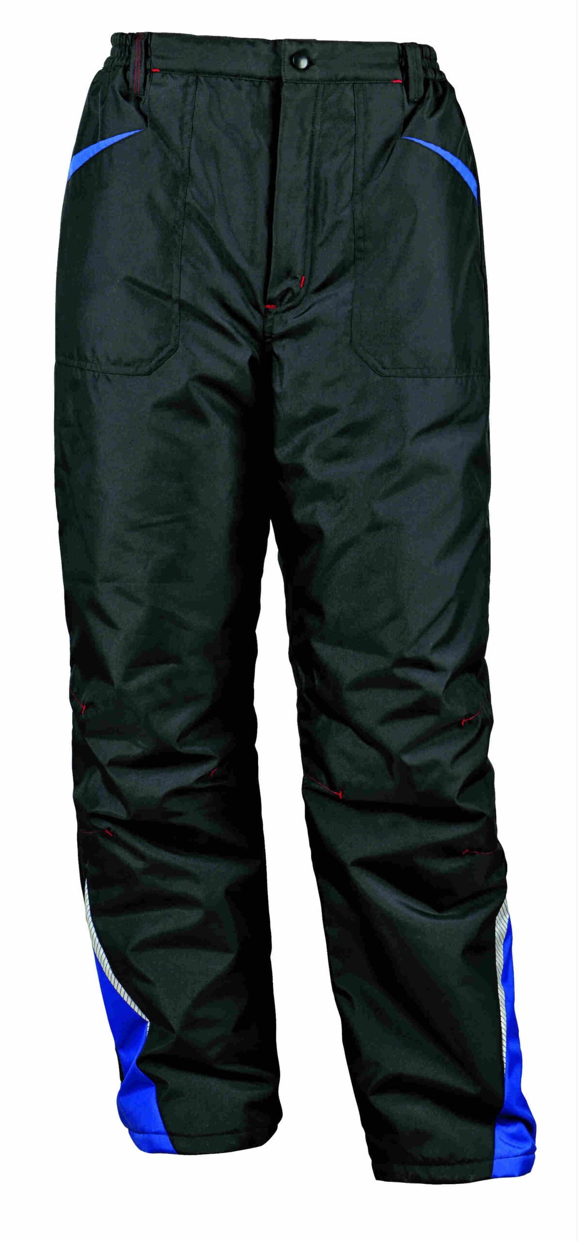 Работния панталон Prisma Winter черно/синьо е изработен от черен плат със сини и светлоотразителни елементи. Панталона е ватиран, в долната част на крачолите се намират светлоотразителните елементи. Панталона е два предни и два задни джоба. Вобласта на кръста от двете страни частично има поставен ластик за по-голям комфорт. Модерен, топъл панталон за зимата.