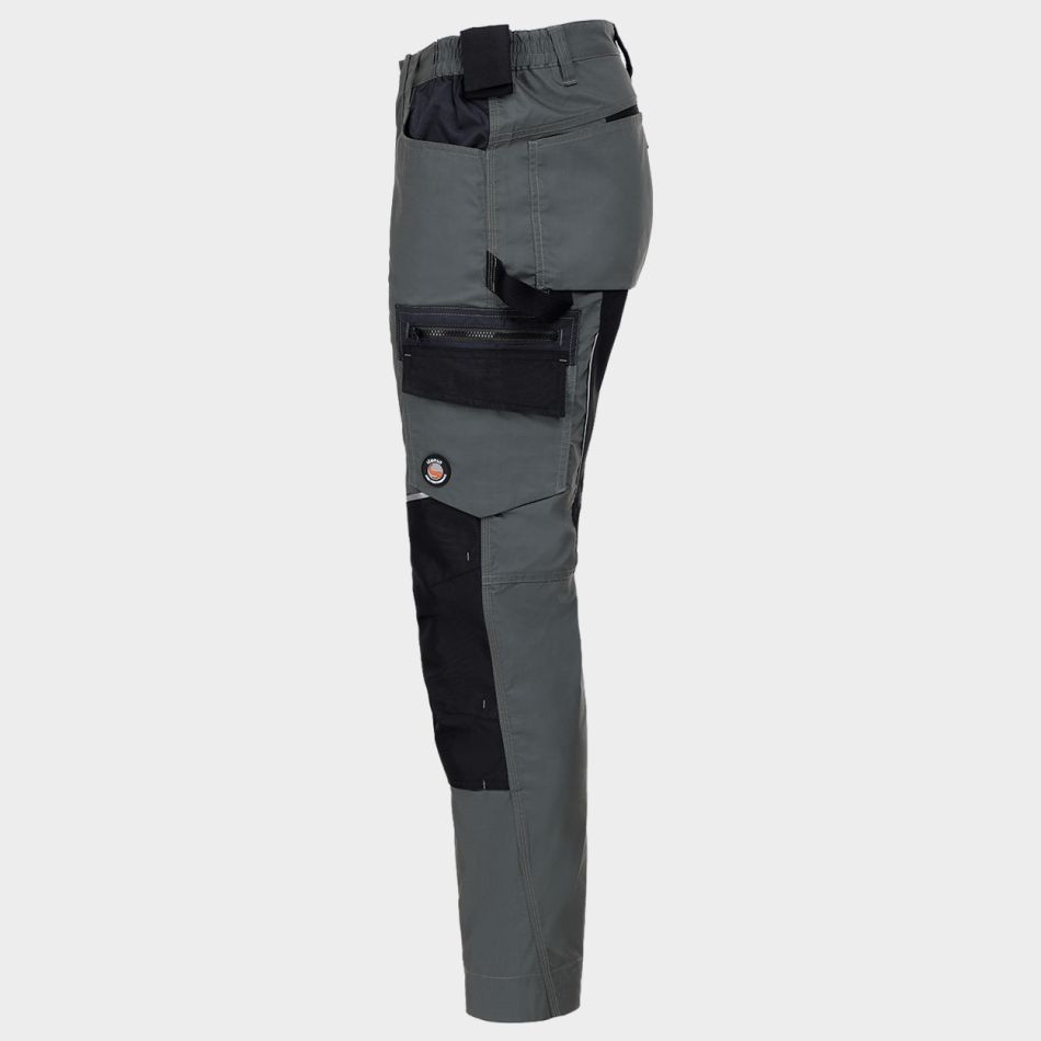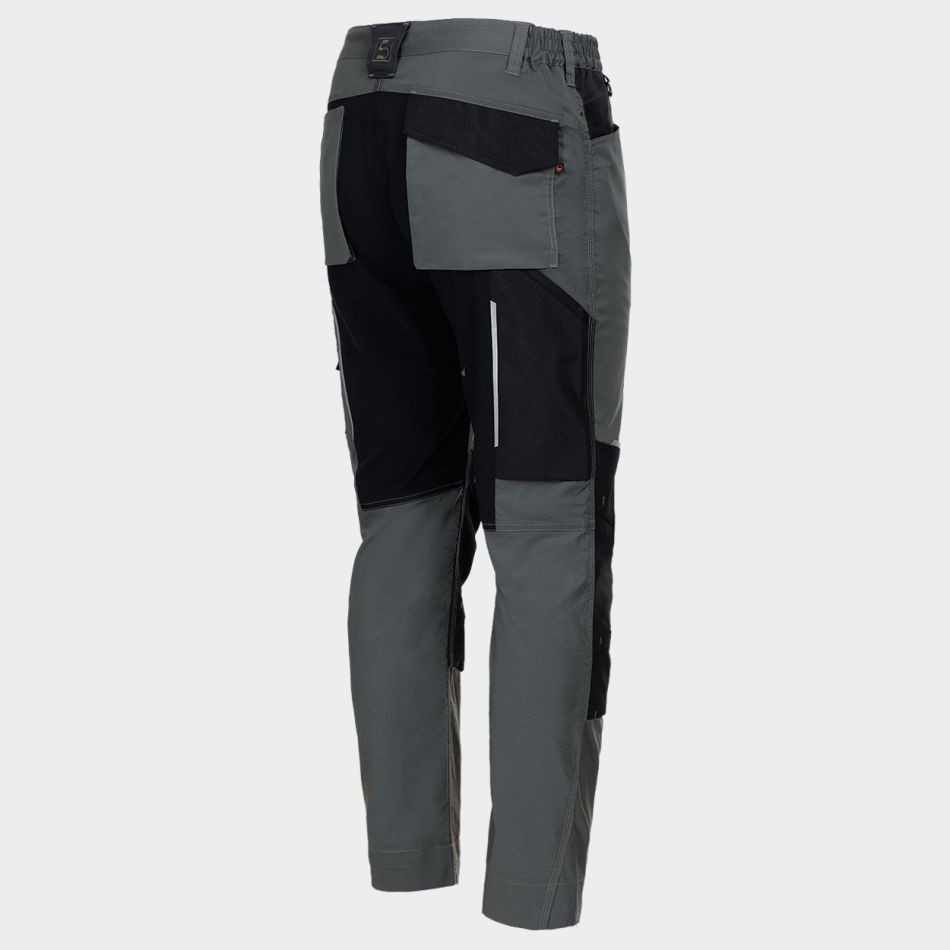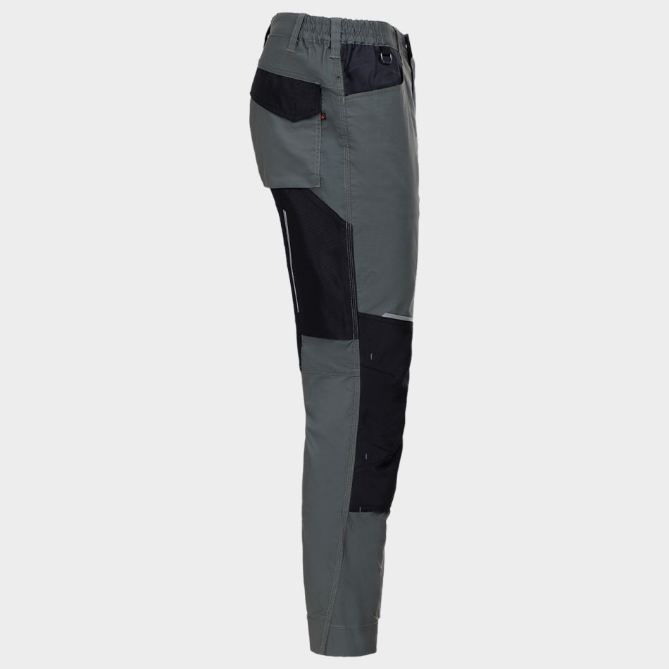 Еластичната талия предлага удобство при движение, позволявайки панталонът да се адаптира към тялото ви, без да ограничава свободата на движенията. Многофункционалните джобове осигуряват достатъчно пространство за съхранение на инструменти и принадлежности, което е особено полезно в динамична работна среда. Подсилените части на панталона добавят допълнителна издръжливост, така че да издържа на високи натоварвания и износване.