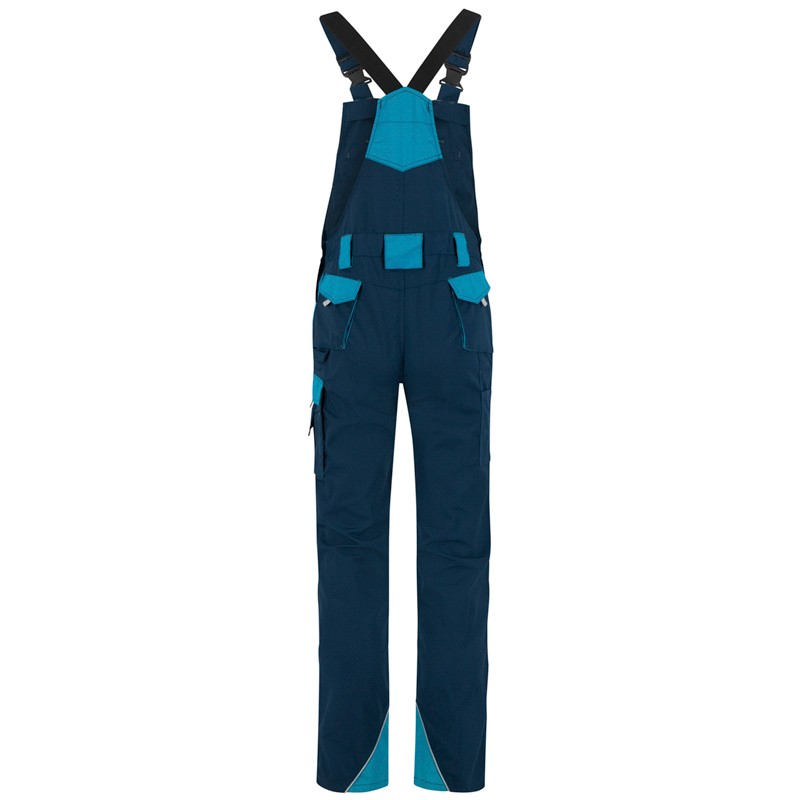 Работният полугащеризон е изработен от 35% памук и 65% полиестер от типа Oxford 600D – устойчив на протриване, 270гр./м2. Моделът е в съчетание тъмно синьо със синьо. Има кант около гръдната част, наколенки и страничен джоб, гайки за колана. Декоративни лентички при джобовете.