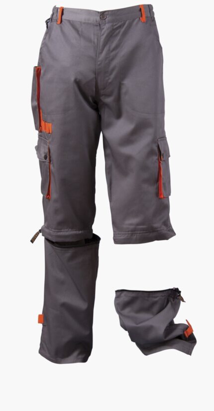Работен полугащеризон изработен от памук/полиестер. Предпазва тялото от вятър, прах, пръски вода и нетоксични замърсявания. Свободна кройка, прав крачол, има един горен джоб с цип, два долни странични и един заден. Закопчава се странично с копчета и има допълнително пристягане в областта на талията с ластик.