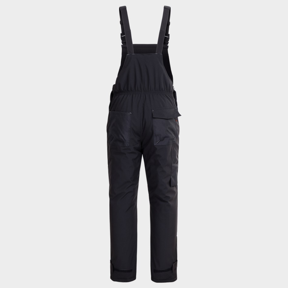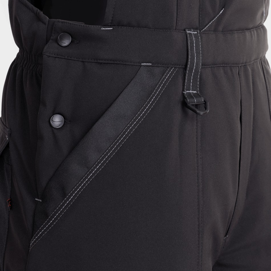 Работен ватиран полугащеризон от Softshell материя. Ветро и водозащитен. Той има два предни и два задни джоба, инструментален джоб. Има светлоотразителни елементи.