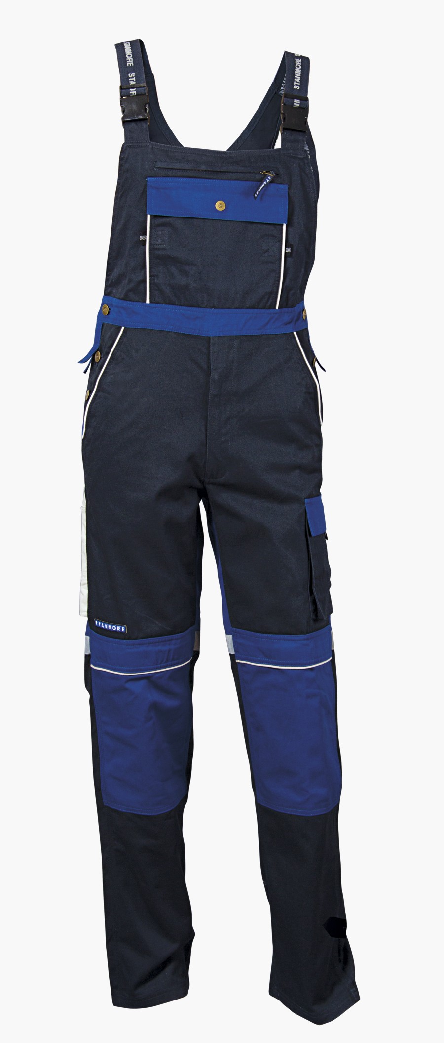 Полугащеризон със светлоотразителни ленти, изработен от 100% памук, 275 g/m2. Защитава от производствени замърсявания и механични въздействия. Полугащеризона е с един горен вмъкнат с цип и джоб с капак с тик-так копче, два долни странични един заден и един инструментален с капак. Странично закопчаване с копчета. Този полугащеризон можете да комбинирате с яке STANMORE или елек STANMORE.