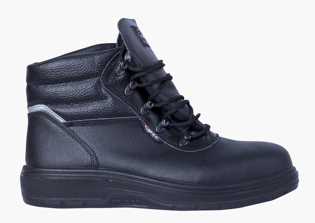 Работните обувки на COFRA са специално разработени за пътно стройтелство и асфалтополагане. Те са високи тип бота изработени от водоотблъскваща естествена кожа. Стелката на обувките е анатомична, парфюмирана и термоизолационна. Ходилото е от PU/Nitrile rubber, с устойчивост на 300 градуса по Целзий (до 1 минута контакт). Топлозащитната полиуретан/нитрилова смес издържа на 180 градуса до 30 мин, като ое гарантиран постоянен топлинен комфорт на краката. Обувките са с неметално бомбе защитаващо при удар и неметална пластина защитаваща от пробождане. Обувките отговарят на европейските стандарти за качество EN 345, който определя основните и допълнителни изисквания към защитни обувки за професионална употреба