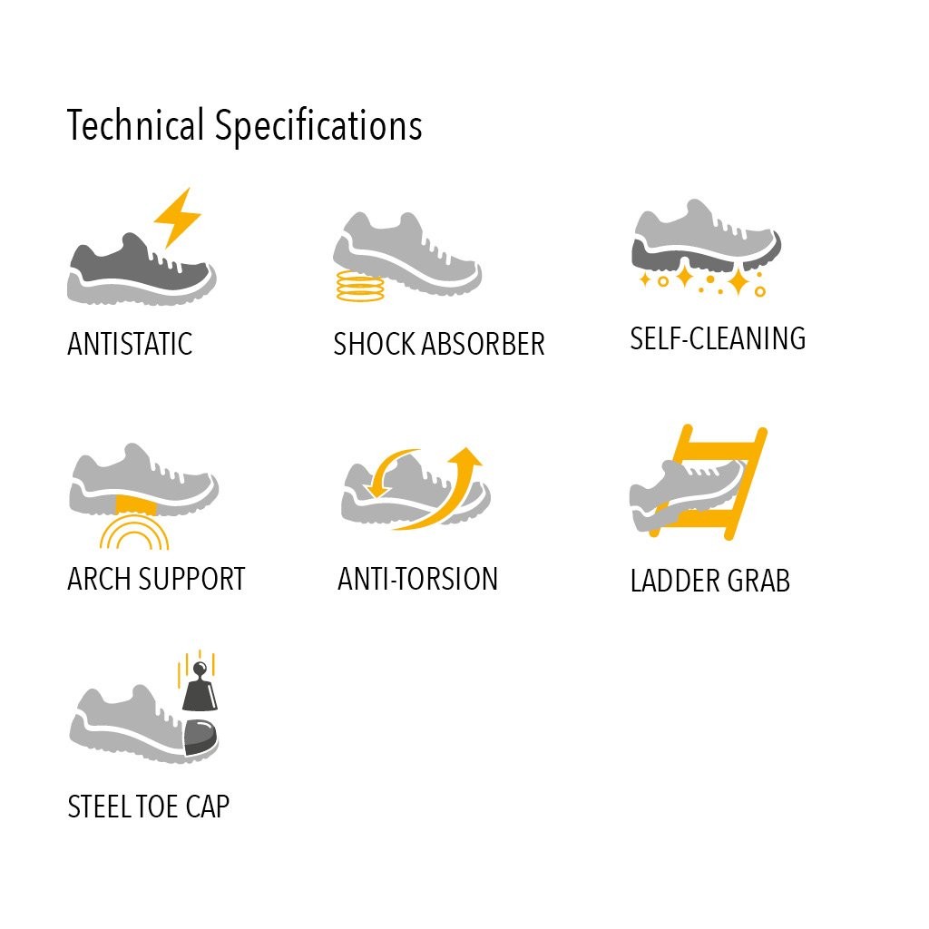 Работни обувки с метално бомбе високи Panda Alfa S1 SRC. Обувките са изработени от естествена кожа. Подплатата е антимикотична, дишаща, с микро каналчета който държат влагата далеч от краката. Стелката е сваляща се. Подметката е самопочистваща с дълбоки грайфери противохлъзгаща, изработена е от два слоя полиуретан като горният е мек за по голям комфорт, а долния е по-твърд и с голяма износоустойчивост. Ходилото издържа на масла, горива и разтворители. Обувките са леки и много удобни.