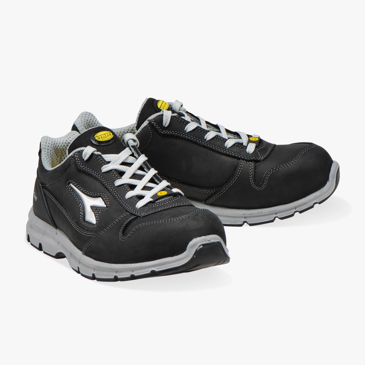 Работните обувки модел DIADORA RUN LOW S3 са изработени от водоустойчив естесвен набук. Вътрешната част на обувките е с антиалергична и антимикотична подплата, абсорбираща потта. Стелката е подвижна, анатомична, абсорбираща влагата с активен въглен против лоша миризма. Ходилo е изработено от двуслоен полиуретан като горната част е мека от полиуретанова пяна, а долната е твърда и износоутойчива. В ходилото е вградена неметална пластина в която са използвани специални препокриващи се тъкани против пробождане на крака, системата е патентована от DIADORA с името K SOLE. Използваната технология помага за термоизолацията на ходилото дори при екстремни температури. Използваните материали осигуряват висока устойчивост, гъвкавост и лекота. Обувките имат вградено метално бомбе, което ще защити пръстите ви при удар с налягане до 200 J. DIADORA RUN LOW S3 SRC ESD са обувки с модерен дизайн, предназначени както за работа така и за свободното време.