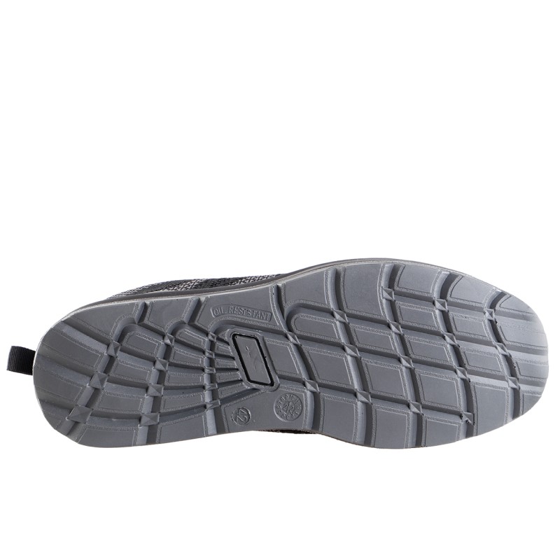 Работните обувки са с модерен, спортен дизайн. Обувките са олекотени като горната част е от полиестерен плат, за да може краката да дишат по-лено. Подплатата абсорбира влагата и е износоустойчива. Обувките са с метално бомбе за клас на защита S1. Подметката е от полиуретан като в областа на петата има шок абсорбер. Много леки и удобни работни обувки.