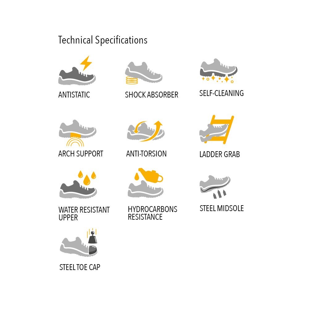 Цели обувки Panda модел Mistral. Работните обувките са изработена от първокачествена естествена телешка кожа, която е обработена против проникване на вода. Ходилото е масло и киселино устойчиво,изработено от двуслоен полиуретан като горната част е мека, а долната е твърда и износоустойчива. Подплатата на работната обувка е антистатична, антиалергични и противоизпотяваща. Обувките са с метална пластина и бомбе (налягане на бомбето 200J, 15 kN) за да покриват клас на защита S3. EN 345. Много удобна и здрава обувка.