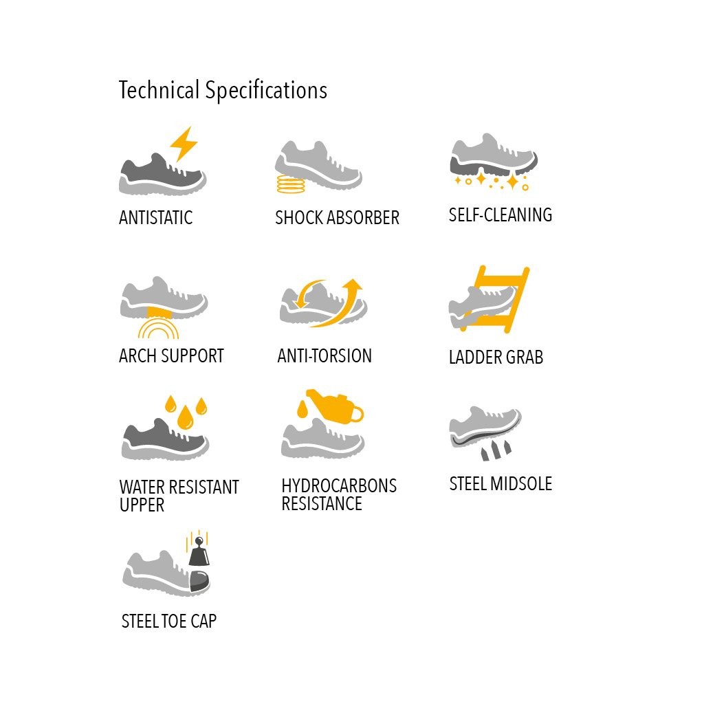 Защитните обувките PANDA MONZA S3 SRC са половинки Произведени са от естествена телешка кожа, обработена да не пропуска вода. Ходилото е маслоустойчиво грайферно и антистатично. Подплатата и стелката са антиалергични, противоизпотяващи и антимикотични. Работните обувки са с метална пластина против пробождане вградена в ходилото и метално бомбе за предпазване на пръстите на краката. Изработени по международен стандарт EN 345
