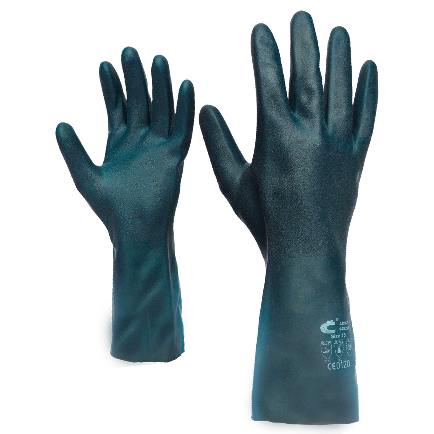 Ръкавиците са изработени от 100% естествен латекс с дебелина 0.70 мм., памучно вътрешно покритие, релефна повърхост в областта на дланта и пръстите, обща дължина от 33 см.