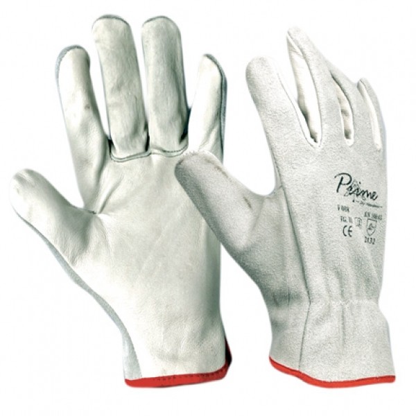Кожени работни ръкавици от бяла телешка кожа. Дланта е изработена от лицева кожа, а гърба и задна част на палеца от цепена кожа /велур/. Ръкавиците са удобни и меки, предназначени са за работа във всяка индустрия – металообработка, заваряване, работа в складове, товаро-разтоварни дейности и т.н.