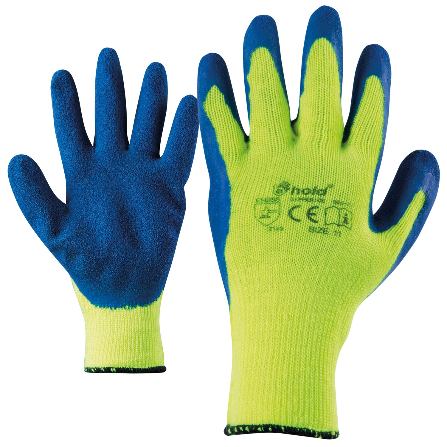 Работни ръкавици от плетено безшевно трико с топла подплата от акрил. Пръстите и дланта са промазани с латексова пяна. Удобни и икономични ръкавици за работа при студени условия.