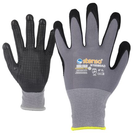 Работни ръкавици от плетено безшевно трико полупотопени в нитрил