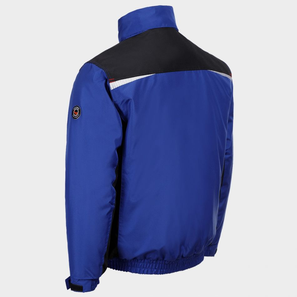 Топло работно яке PRISMA WINTER в цвят синьо и черно. Работното яке е изработено от плат 100% Полиестер допълнително промазан с полиуретан за по голяма устойчивост на вятър и дъжд. Якето има два долни джоба и един на гърдите който се закопчава с цип. В кръста има ластик, а ръкавите се пристягат с ластик и велкро. Якето се закопчава с цип който е покрит с пластрон. Топло и удобно яке за зимния сезон.