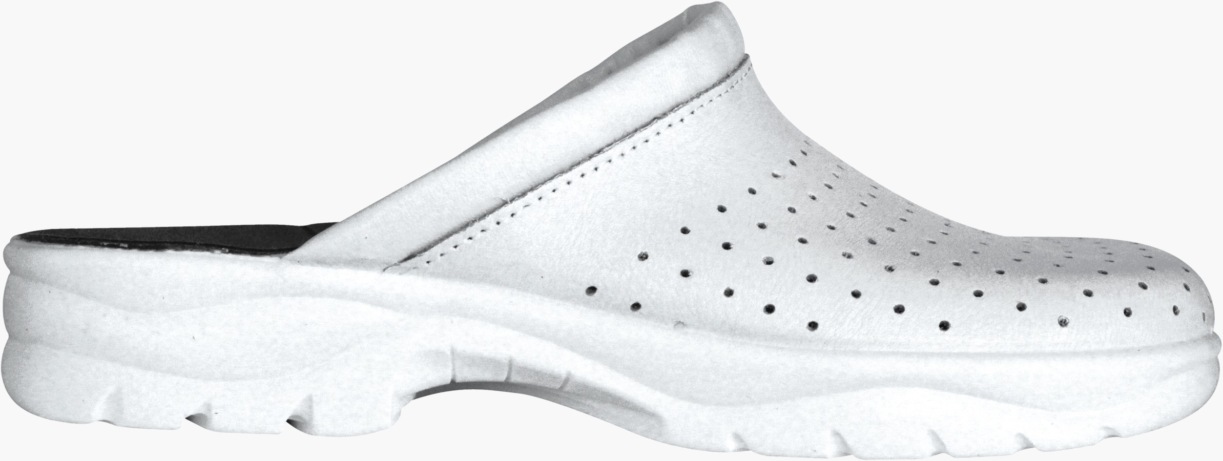 Работното медицинско сабо е с горна част от еко кожа, с полиуретаново покритие. Стелката е от цепена естествена кожа. Двуслойното полиуретаново ходило допринася за комфорта когато носите тези чехли.