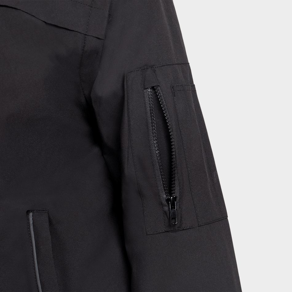Софтшел яке PILOT PRO BLACK – изработено от 100% полиестер с TPU мембрана, черно, със свалящи се ръкави, качулка в яката и джобове затварящи се с цип.